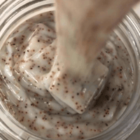 1. Use your scoop, Scoop a nickel-sized amount of our Apricot Facial Scrub into your fingertips and massage onto damp skin.